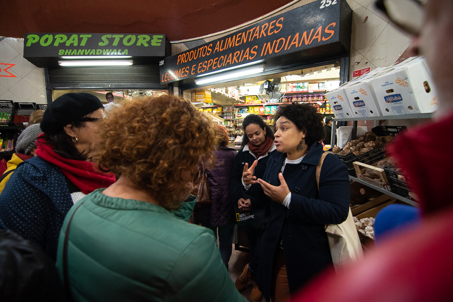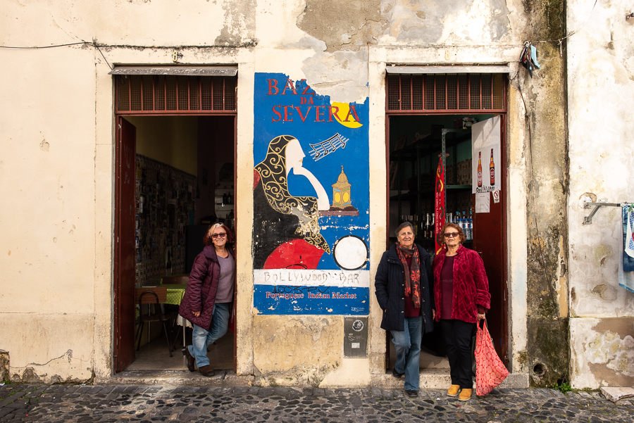 “Este cheiro a especiarias é inconfundível”, exclama entretanto José ao entrar na rua. “Isto agora está muito bem arranjado… quando era pequeno esta zona estava completamente degradada”, vai descrevendo. “Primeiro vimos chegar aqui imigrantes dos PALOP, do Brasil, e depois orientais, como chineses, indianos, nepaleses…”, conta, enquanto Cátia chama a atenção para a zona que é hoje conhecida como “Banglatown”. Uma realidade integrada no bairro da Mouraria no qual a fixação de organismos públicos e organizações sociais também “contribuíram para a sua revitalização”. Um lugar onde “ainda se estende roupa”, complementa Hérica, apontando para o mar de cor.